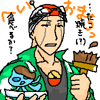 というか大変だよ!またしても多大なる萌え到来だよ! またナツから絵ハガキが届いて ナガレさんが!ナガレさんが!焼餅を!磯辺焼きを!じゃなくてヤキモチを!! 〜絵日記〜 前の子から届いた絵ハガキ… ふじちゃんと仲良しだったらしい… なんとなく、くやしい… って!!! おおおおおこれ可愛すぎるよっ!!やばいよ!!何コレー!(そして自分のイタさもヒートアップだよ…) あー良かったナツクリアーしてて良かった。いいもん見れた。 でもいい加減日記他の話題にしなきゃね。(ゲームは続けるけど) 強いて言うなら『金の緑の薬』『銀の怪しい薬』『鉄の赤い薬』。 鉄の赤い薬って赤サビじゃ…と思って選択したらもれなく他のもくれた。激しくいらない。 |